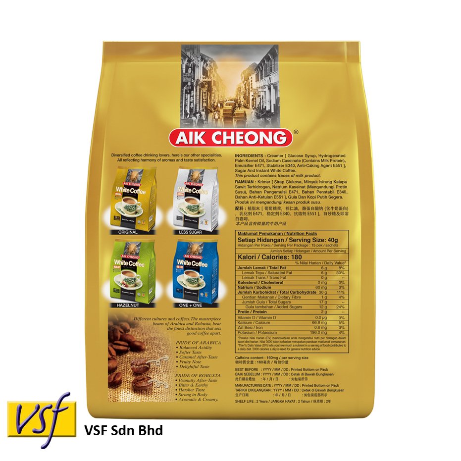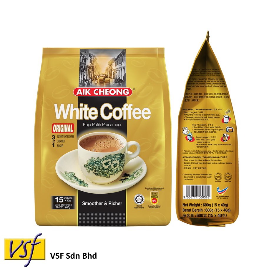 3 in 1 White Coffee Original is made only from the finest premium Columbian coffee beans. Delicately brewed with finest sugar and non-dairy creamer, it delivers the most exquisite freshness of coffee. Rich in robust aroma and traditional quality, our coffee always renders lasting discerning flavour impressions. Caffeine Content: 83mg/per serving.